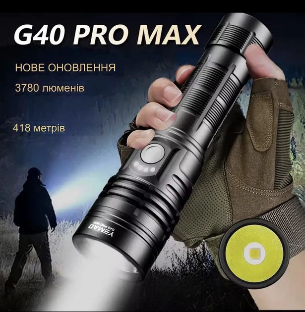 Професійний металевий Led ліхтар YM-G40Pro, 3800 Лм