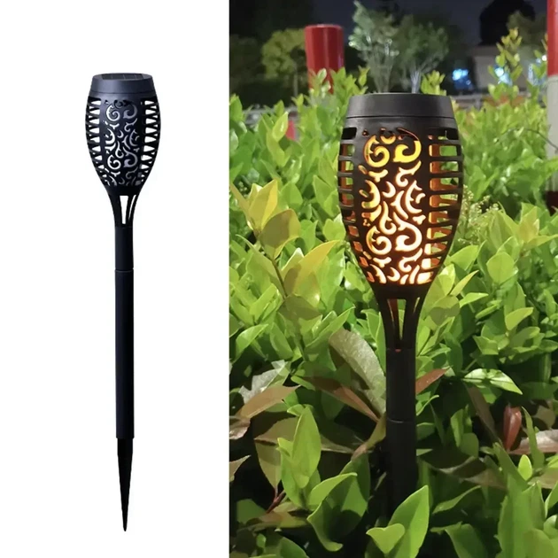 Садовий ліхтар факел на сонячній батареї LED вуличний світильник з ефектом полум'я водонепроникний