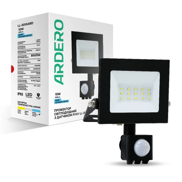 Світлодіодний прожектор Ardero LL-2010ARD 10W 800Lm 6500K з датчиком (80021)