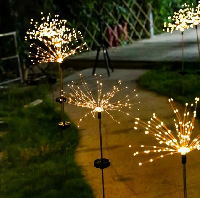 Ліхтар садовий Феєрверк газонний на сонячній батареї, 90 led, 8 режимів