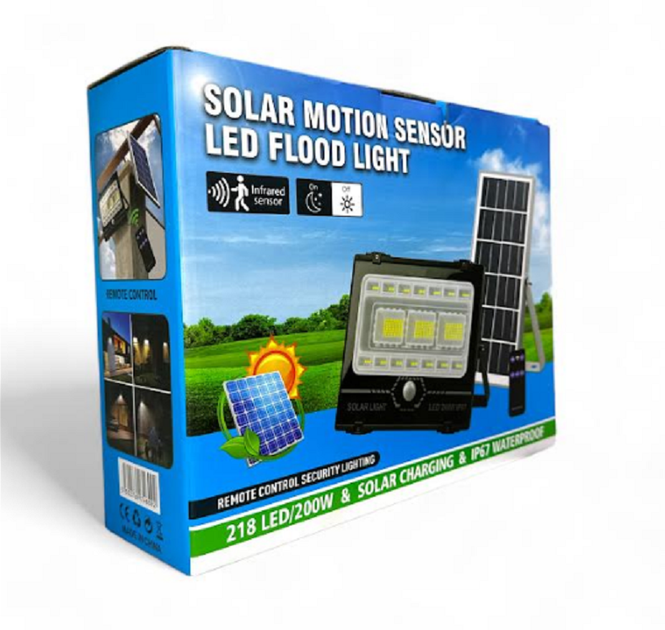 Вуличний ліхтар з сонячною панеллю COBA CB T305 200Вт датчик руху