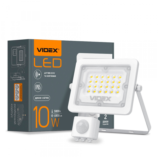 Прожектор світлодіодний з датчиком руху LED VIDEX F2e 10W 5000K білий (денне світло)