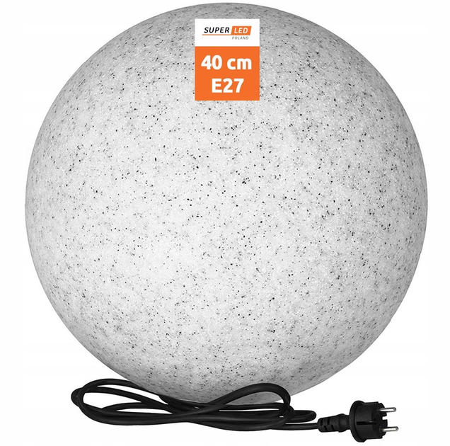 Світильник садовий, Кам’яна лампа куля 50см, SuperLED E27 230V з вилкою