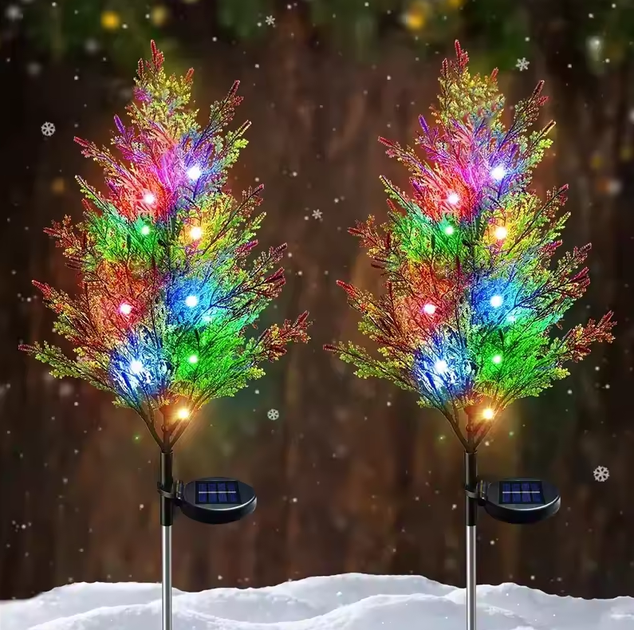 Вулична новорічна міні ялинка на сонячній батареї з RGB підсвіткою 2 шт.