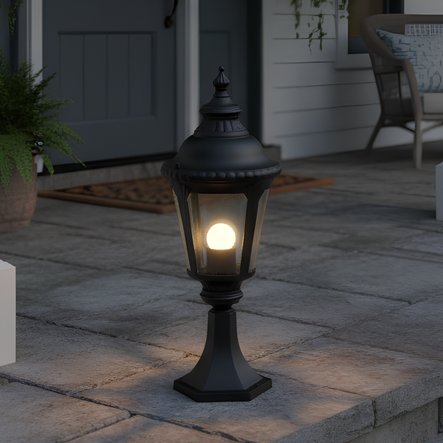 Садовий ліхтар Sirius YD 0205 під лампу E27 чорний металевий корпус IP45