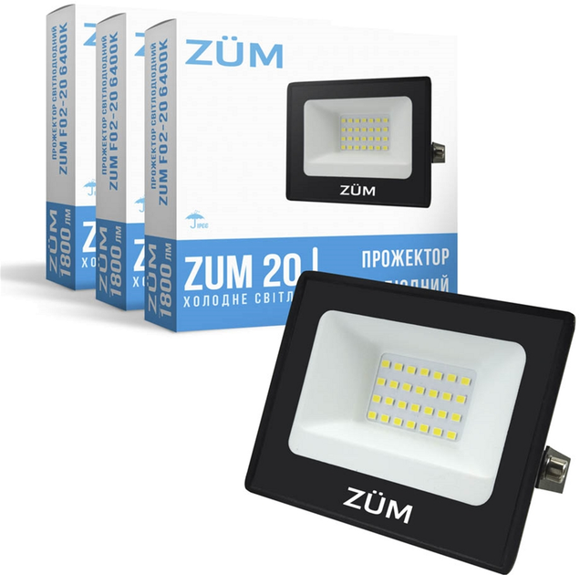 Набір 3 шт прожектор LED 20W Євросвітло ZUM F02-20 6400K