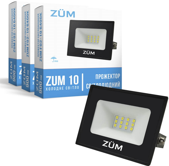 Набір 3 шт прожектор LED 10W Євросвітло ZUM F02-10 6400K