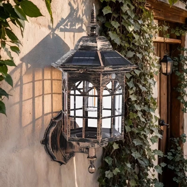 Сонячний ретро настінний ліхтар вуличний вінтажний світильники з датчиком руху (g006)