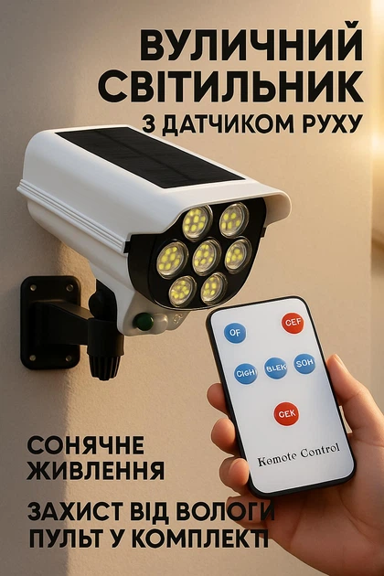 Світлодіодний вуличний ліхтар CL 877B на сонячній батареї з датчиком руху та пультом керування