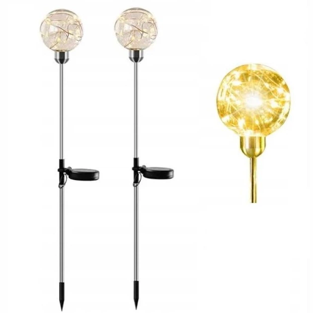 Ліхтар садовий світлодіодний у ґрунт з теплим білим світінням на сонячній батареї 7WW 2 шт