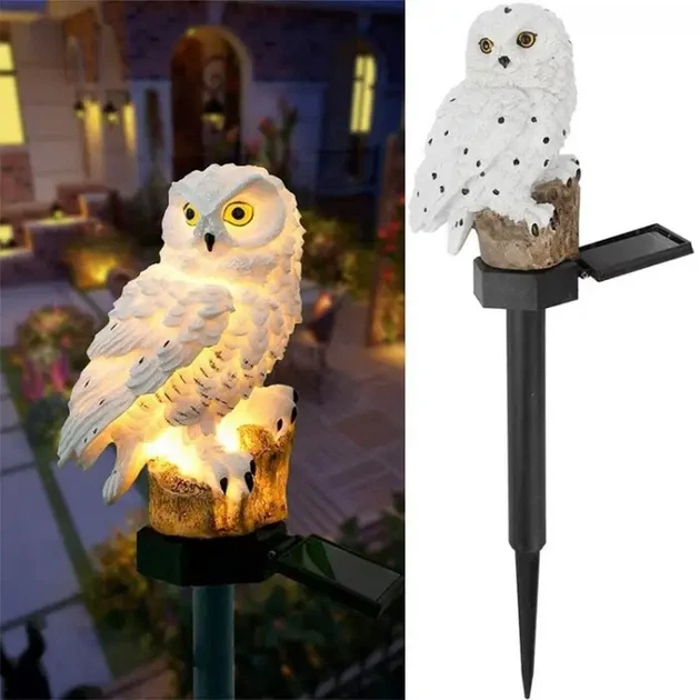 Садовий ліхтар Сова з сонячною панеллю білий висота 15 см АБС