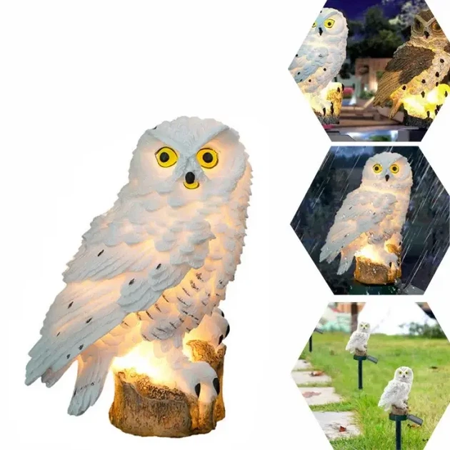 Ліхтар садовий Сова із сонячною панеллю WHITE