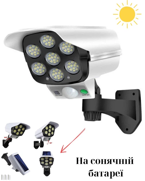 Вуличний ліхтар світильник на сонячній батареї solar з датчиком руху з пультом у вигляді камери спостереження садові світиль