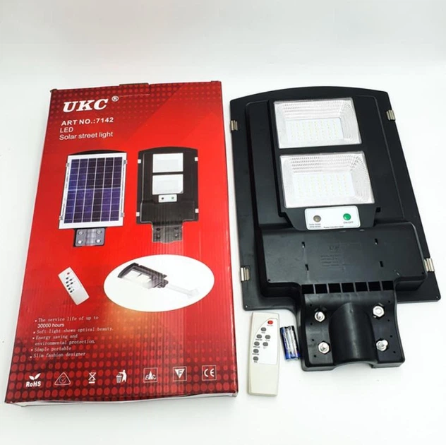 Ліхтар вуличний світильник акумуляторний на сонячній батареї з пультом Solar LED Street Light UKC 7142 90W