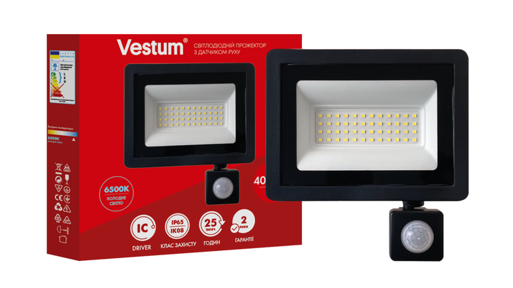 Світлодіодний прожектор з датчиком руху Vestum 50W 4000Лм 6500K 180-260V IP65 1-VS-3022