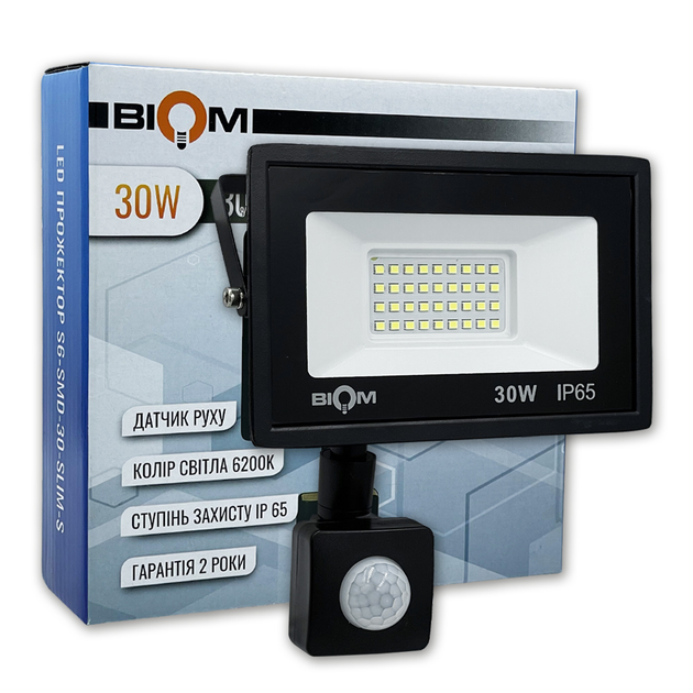 Світлодіодний прожектор BIOM 30W S6-SMD-30-Slim+Sensor 6200К 220V IP65