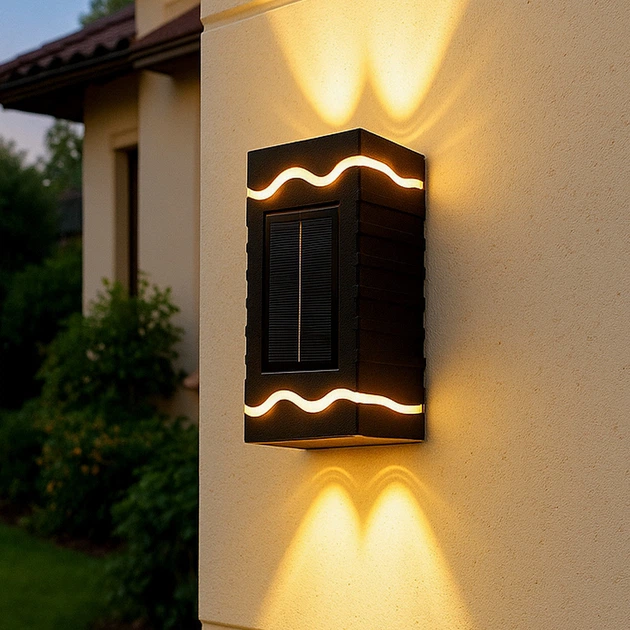 Настінний світильник на сонячній панелі 1 Вт чорний теплий білий для саду та фасаду