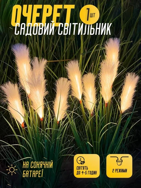 Вуличний світильник на сонячній батареї "Очерет" 70см, Теплий білий / Садовий ліхтар (L)