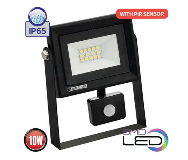 Чорний прожектор з датчиком руху Horoz Pars/S-10 SMD LED 10W 6400K IP65 800 Lm