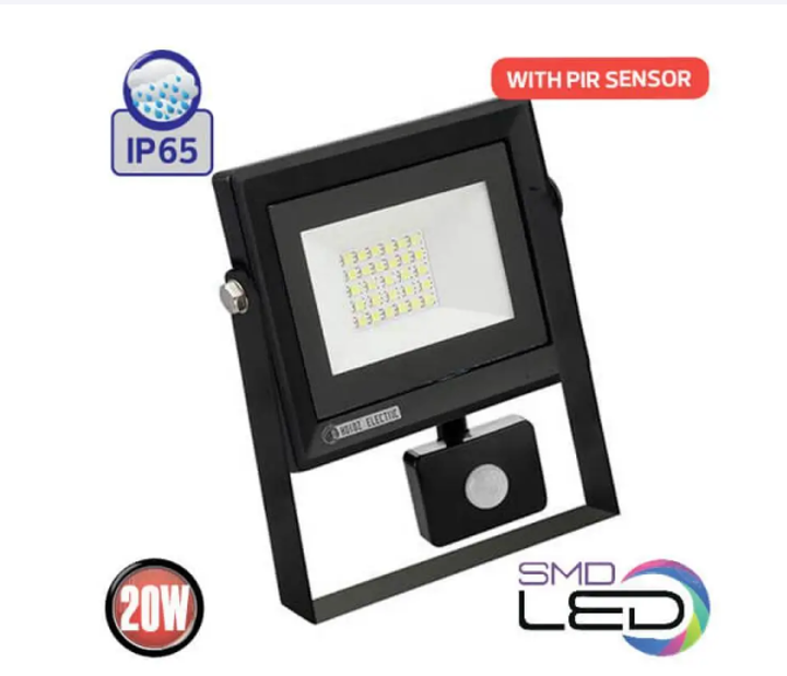 Чорний прожектор з датчиком руху Horoz Pars/S-20 SMD LED 20W 6400K P65 800 Lm
