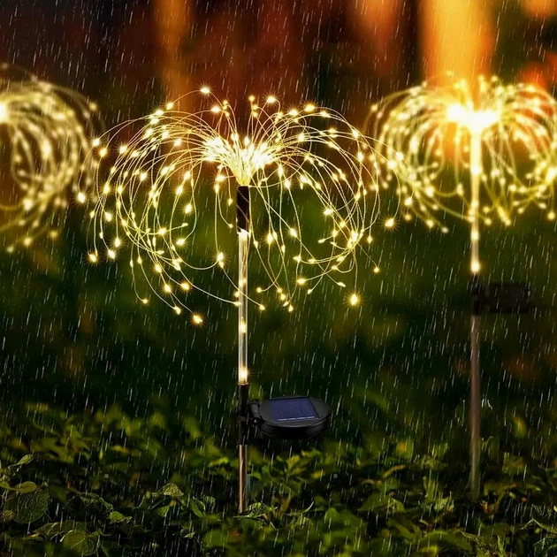 Ліхтар садовий 120LED на сонячній батареї для зовнішнього освітлення басейнів чорний Феєрверк 1шт