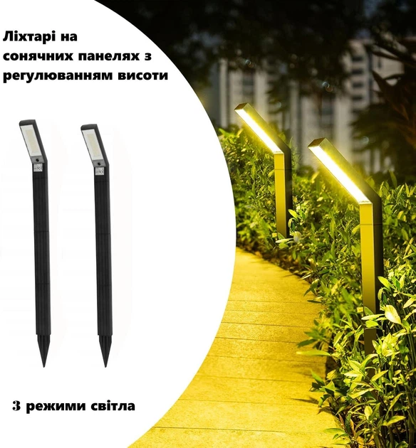 Комплект садових LED світильників 2 шт на сонячній панелі водонепроникні IP65, 3 режими світла та регулювання висоти для сад