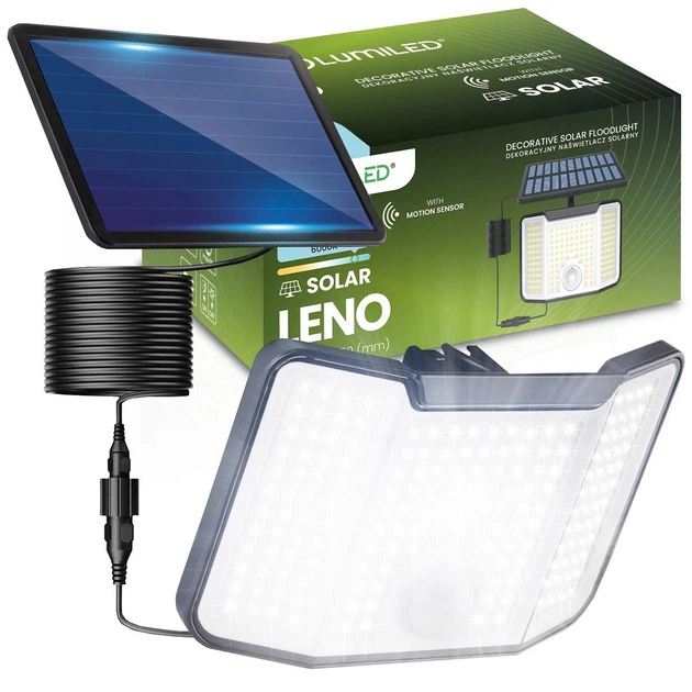 Сонячний LEDпрожектор Lumiled LENO 10 Вт широкий кут освітлення, з датчиком руху і сутінків — IP44, 800 лм, холодне біле сві