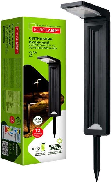Вуличний світильник EUROLAMP LED S1 2W 6500К 2W 6500К IP54 з акумулятором і сонячною батареєю (4262380667174)