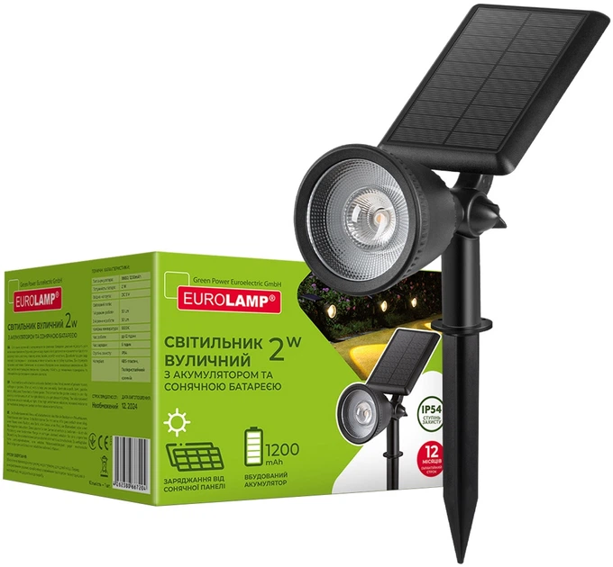 Вуличний світильник EUROLAMP LED S2 2W 6500К 5V IP54 з акумулятором і сонячною батареєю (4262380667181)