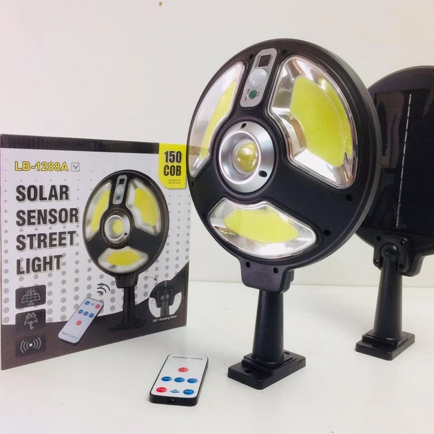 Ліхтар вуличний UKC LB-1288A акумуляторний світильник 3000mA 150 COB на сонячній батареї з датчиком руху і пультом ДУ, Чорни