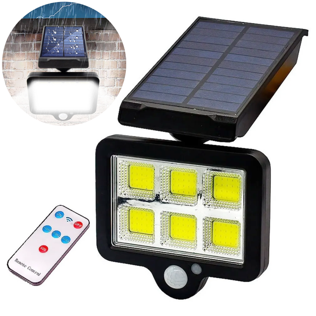 Вуличний прожектор-ліхтар 120 COB, IP65, з сонячною панеллю, датчиком руху та пультом, YT-140