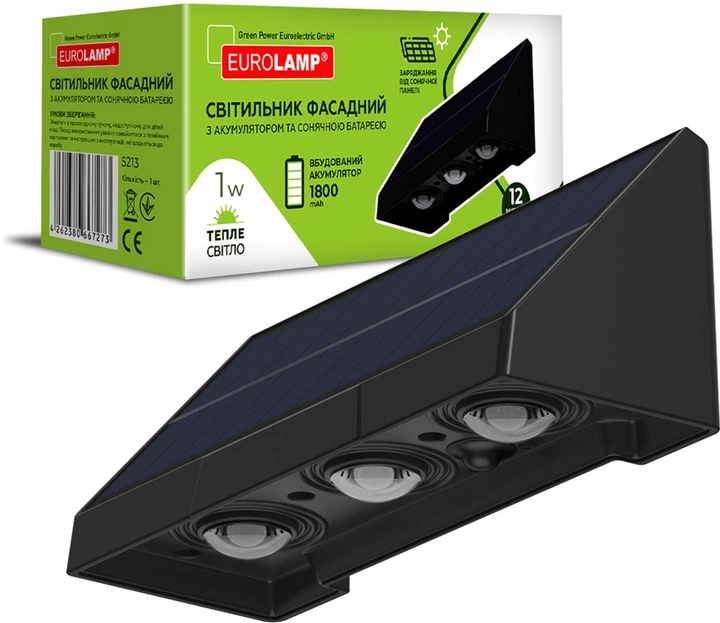Фасадний LED світильник Eurolamp 1W 160 Lm 3000K IP65 з акумулятором та сонячною батареєю