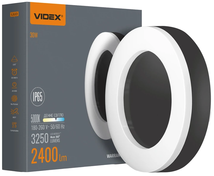 LED світильник ART IP65 круглий VIDEX 30W 5000K Black