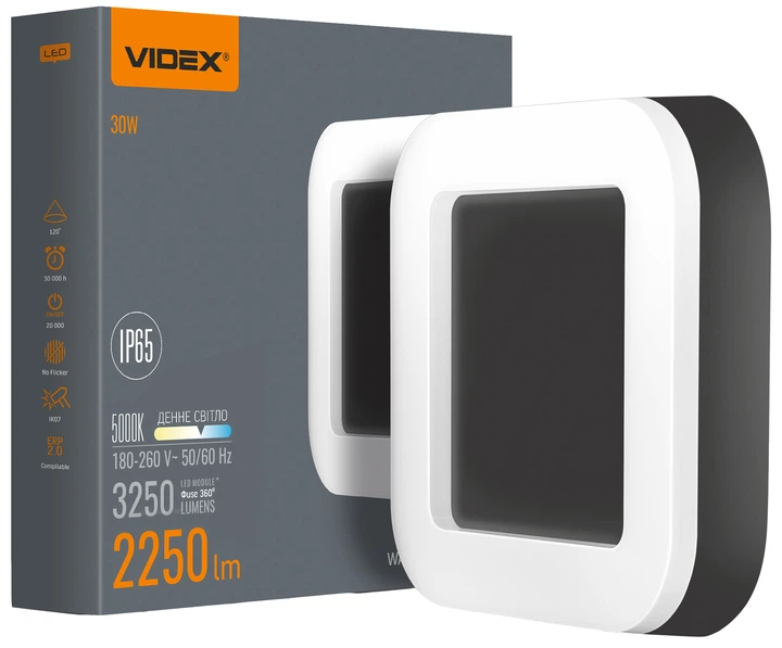 LED світильник ART IP65 квадратний VIDEX 30 W 5000 K