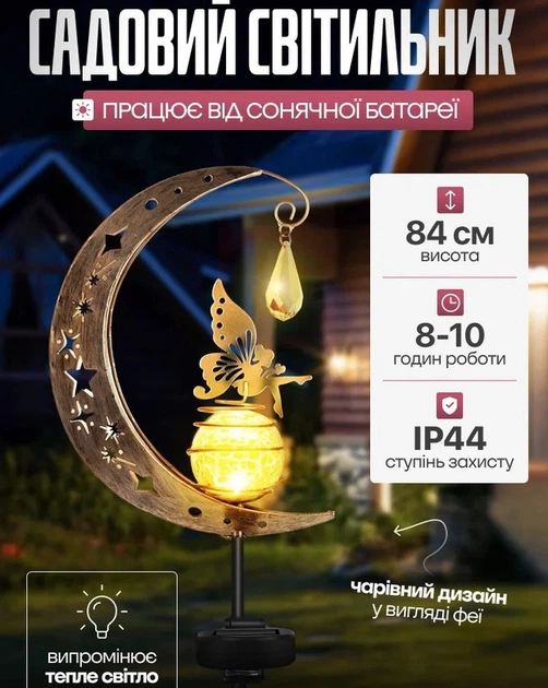 Світильник на сонячній батареї для дому у вигляді півмісяця з декоративною фігуркою феї