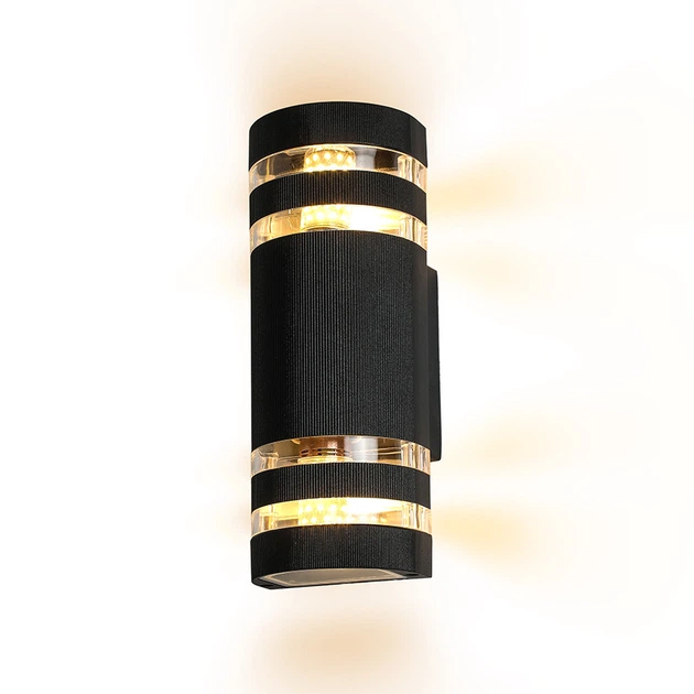 Фасадний світильник Levistella настінний із алюмінієвим корпусом під дві лампи Е27 чорний IP54 923L607-2