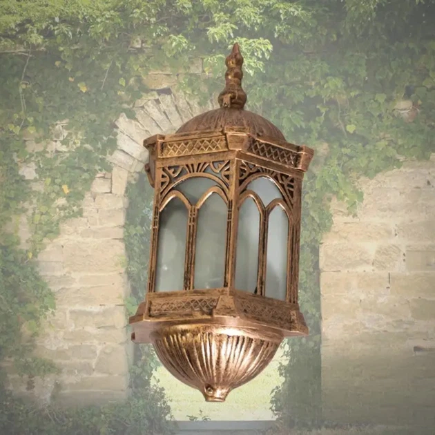 Фасадний вуличний світильник Diasha настінний із металевим каркасом під одну лампу Е27 бронзовий IP40