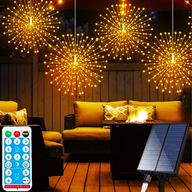 Вуличний світильник Феєрверк на сонячній батареї + пульт, 4 пучки (L)