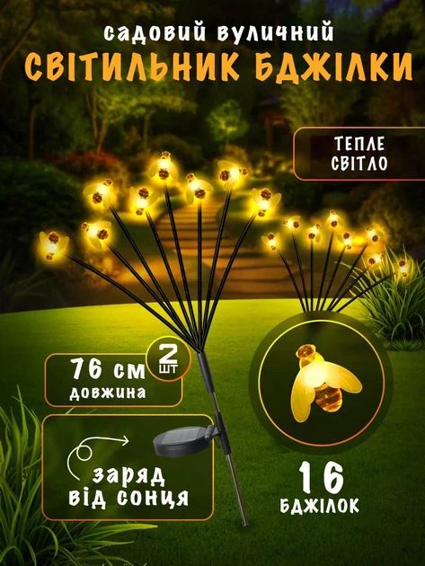 2шт Світильники садові на сонячній батареї бджілка 2 шт , декор для дачі, освітлення ділянки