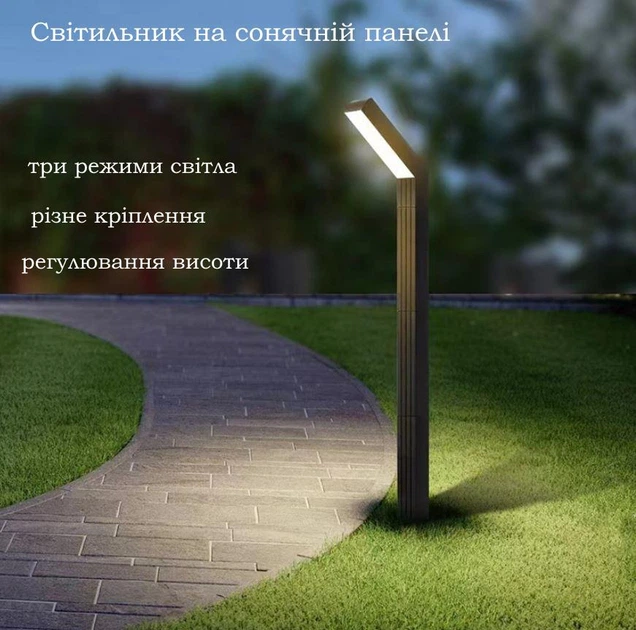 LED світильник на сонячній панелі водонепроникний IP65, 3 режими світла та регулювання висоти для саду, доріжок, тераси, тро
