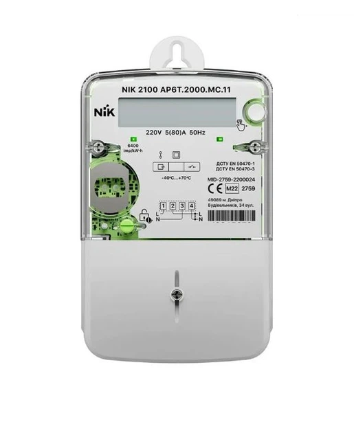 Лічильник NIK 2100 AP6T.2200.MC.11 220В 5(80)А багатотарифний, інтерфейс RS-485