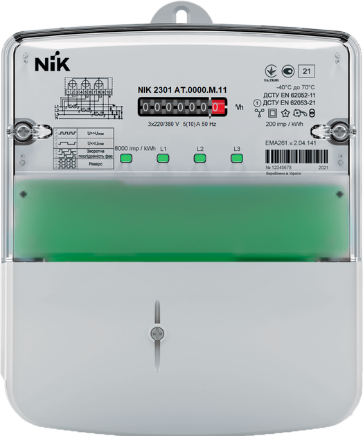 Лічильник трифазний NIK 2301 AT.0000.M.11 5(10)А трансформаторного підключення електромеханічний
