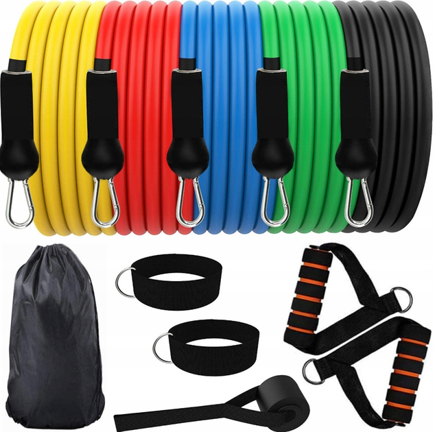 Набір еспандерів 11 в 1 з ручками тримачами для ніг і кріпленням до дверей 4.5-13.6 кг