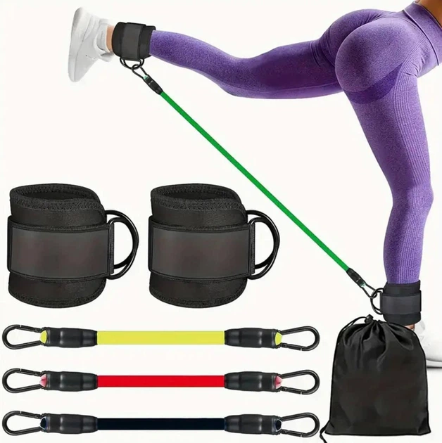 Набір для тренування ніг та сідниць: 2 браслети на щиколотку + 3 еластичні фітнес-резинки з сумкою