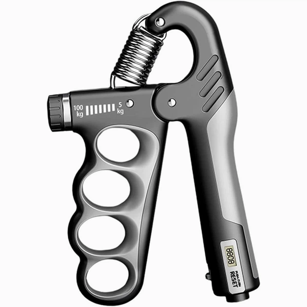 Еспандер кистьовий пружинний з регульованим навантаженням 5-100кг механічним лічильником сірий