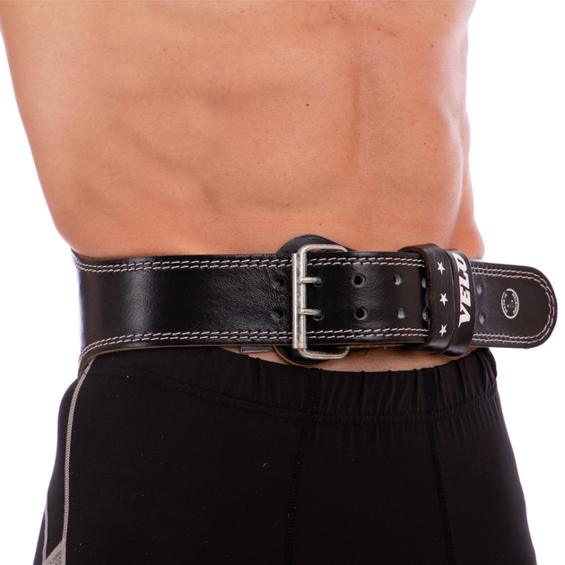 Пояс атлетичний шкіряний VELO Top (ширина-6in (15см), р-р 2XL довжина 110-125см, з підкладкою для спини) чорний-білий