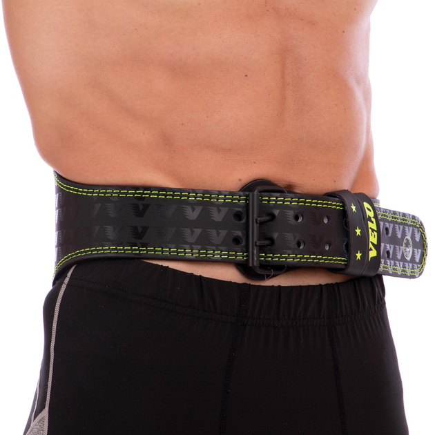Пояс атлетичний шкіряний VELO Ultra (ширина-6in (15см), р-р 2XL довжина 110-125см, з підкладкою для спини) чорний-салатовий