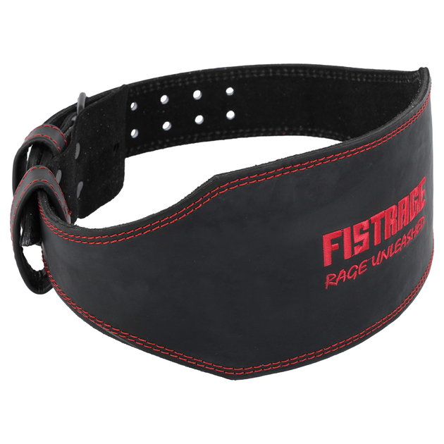 Пояс атлетичний ШКІРА спина 15 см сталева пряжка FISTRAGE колір чорний з червоним VL-5478 розмір XL