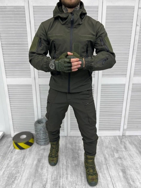 Тактичний костюм Softshell з кишенями та липучками для шевронів Olive XL
