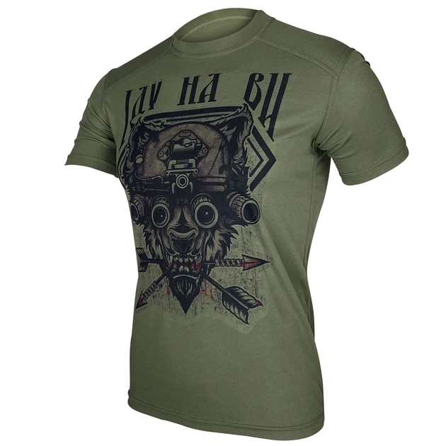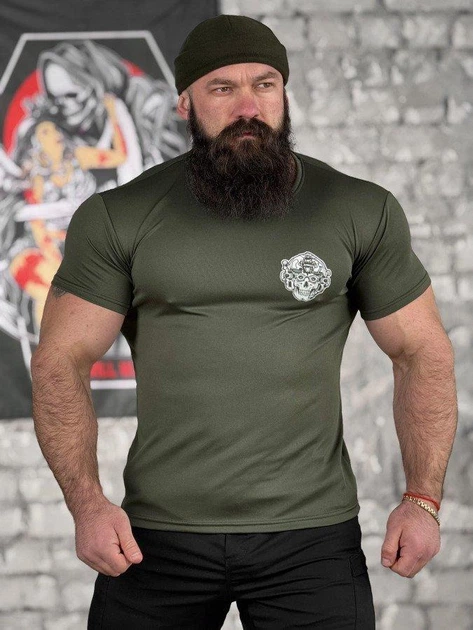 Тактична футболка потовідвідна з принтом 2XL олива (91319)